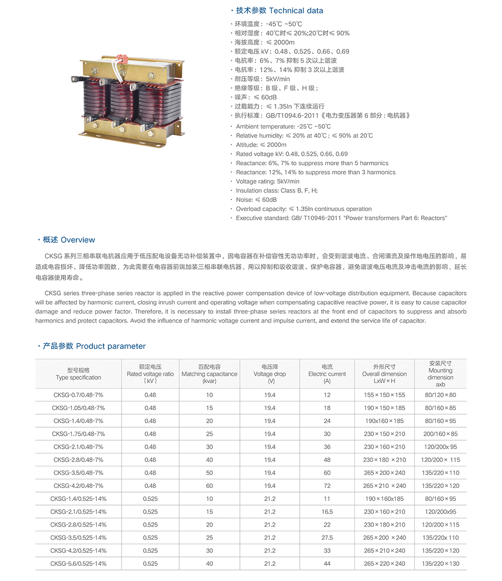 CKSG系列三相串联电抗器