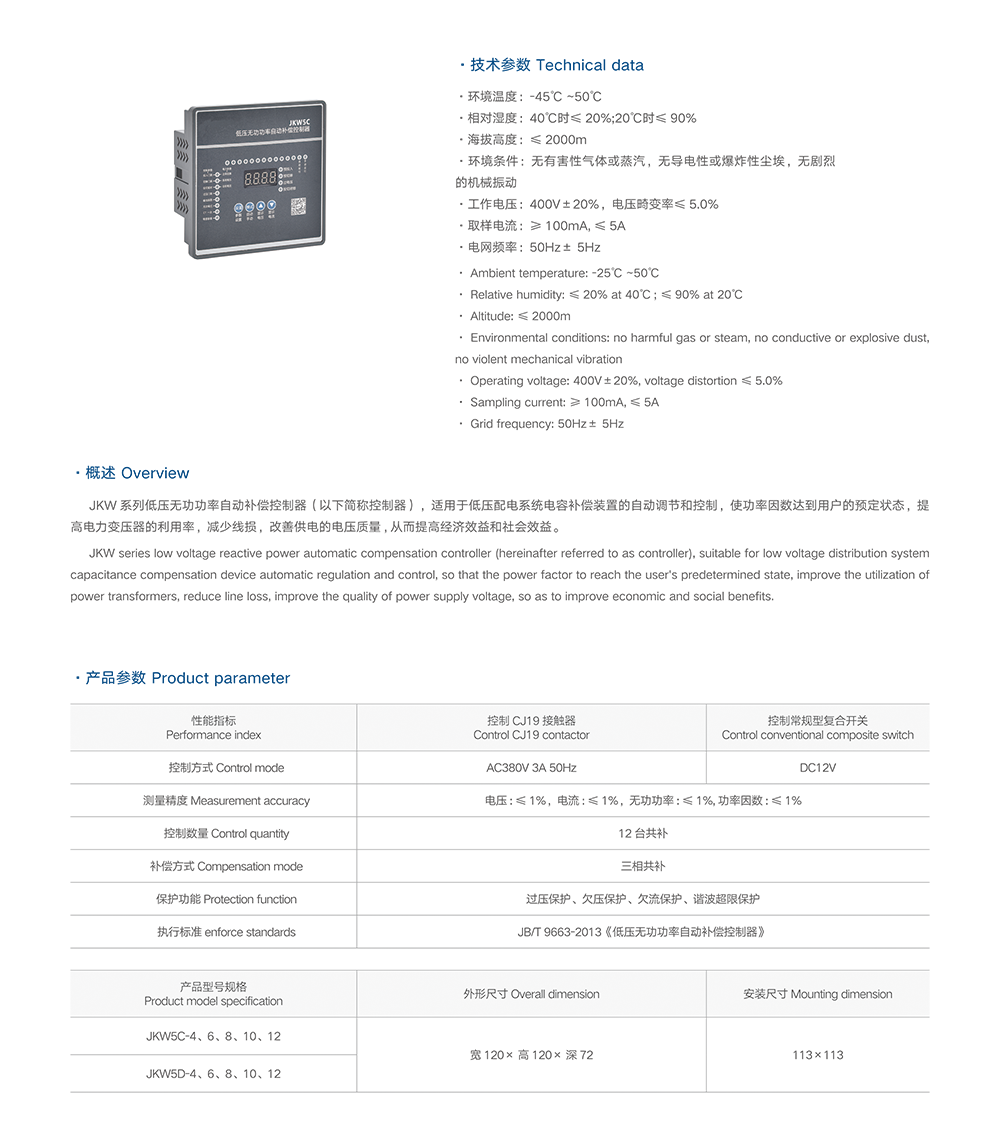 JKW系列低压无功功率自动补偿控制器